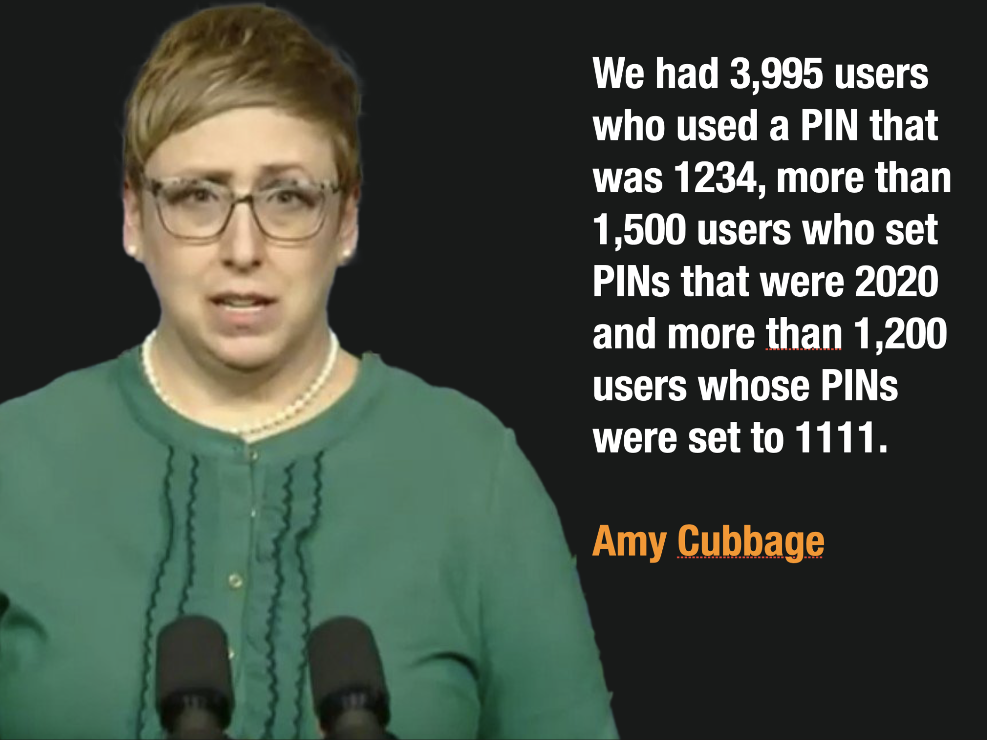 “We had 3,995 users who used a PIN that was 1234, more than 1,500 users who set PINs that were 2020 and more than 1,200 users whose PINs were set to 1111.”