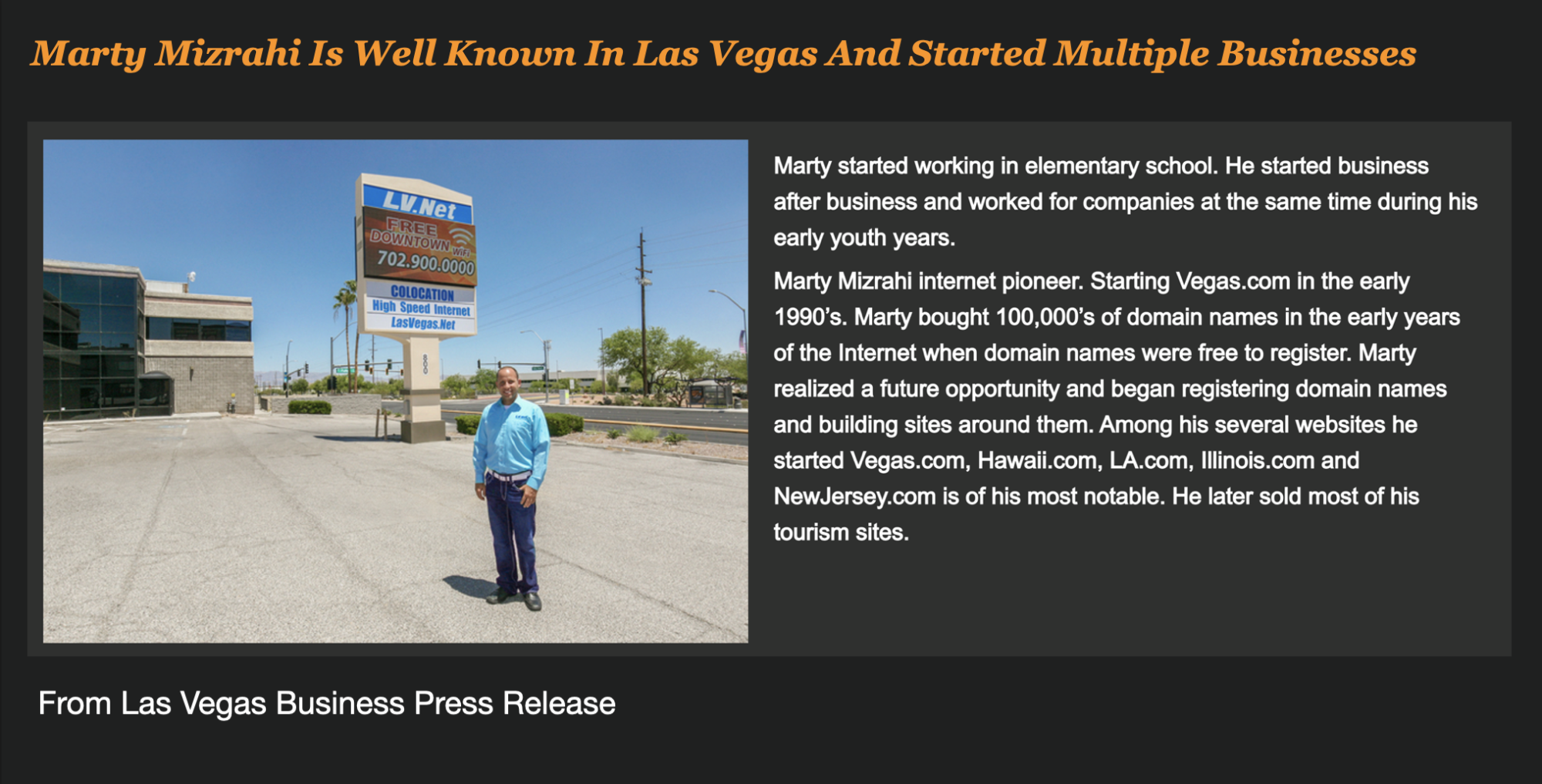 Surprisingly one of the men – Marty Mizrahi – is a successful Las Vegas businessman that started Vegas.com and purchased 100,000’s of thousands of domains in the early 1990s when the internet was blossoming.