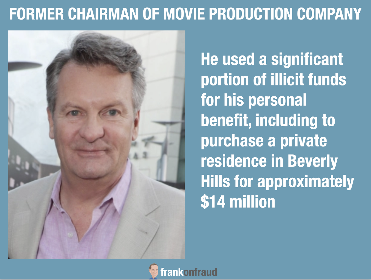 The Department of Justice announced that he orchestrated a massive fraud, embezzling approximately $14 million of investor funds from his film company to pay for a Beverly Hills estate, among other fraudulent acts.