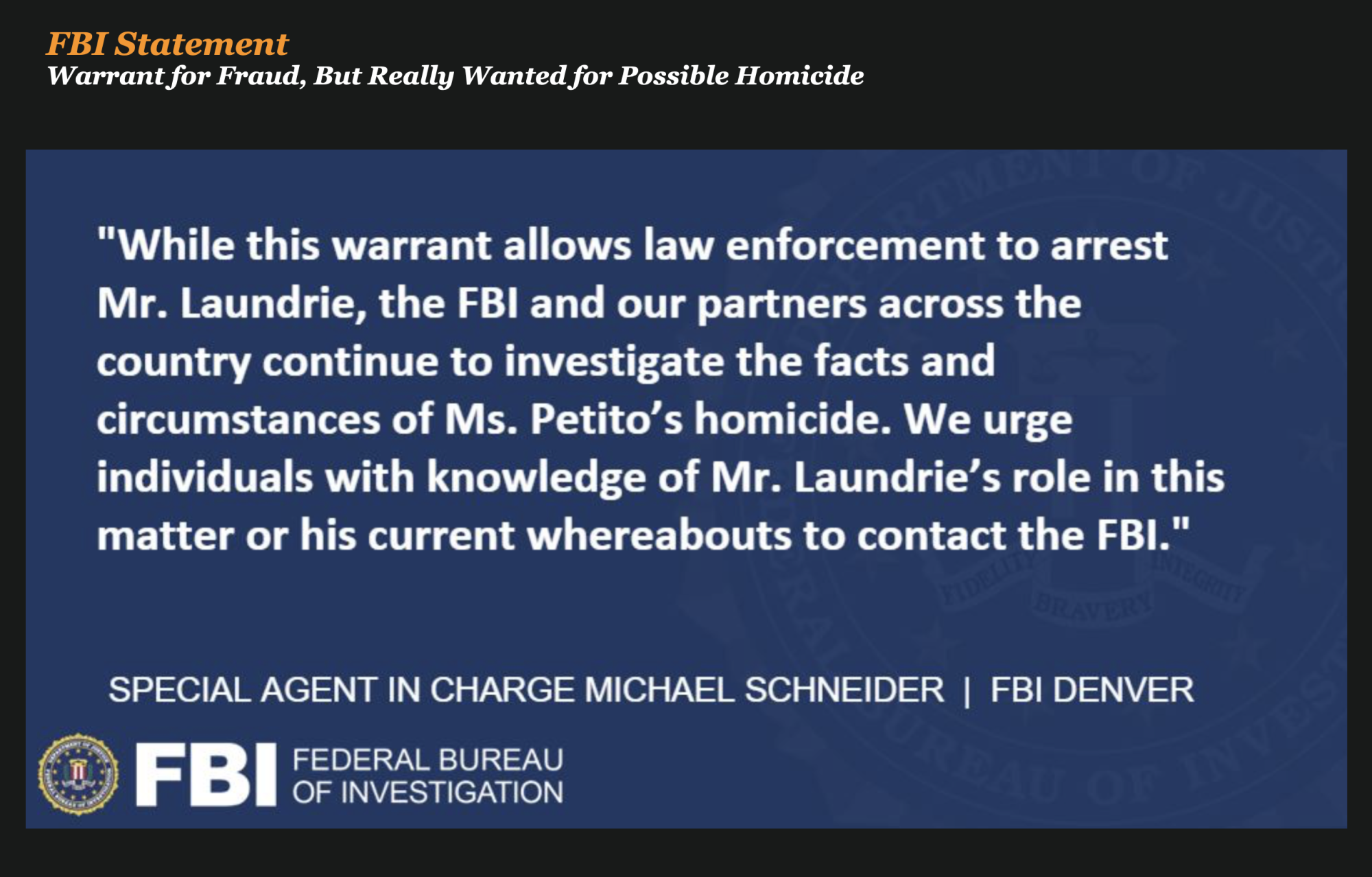 He may be the subject of a nationwide manhunt but it’s not for card fraud. Michael Schneider, the FBI special agent in charge, said an arrest warrant will allow law enforcement across the country to continue pursuing Laundrie while the investigation continues into Petito’s homicide.