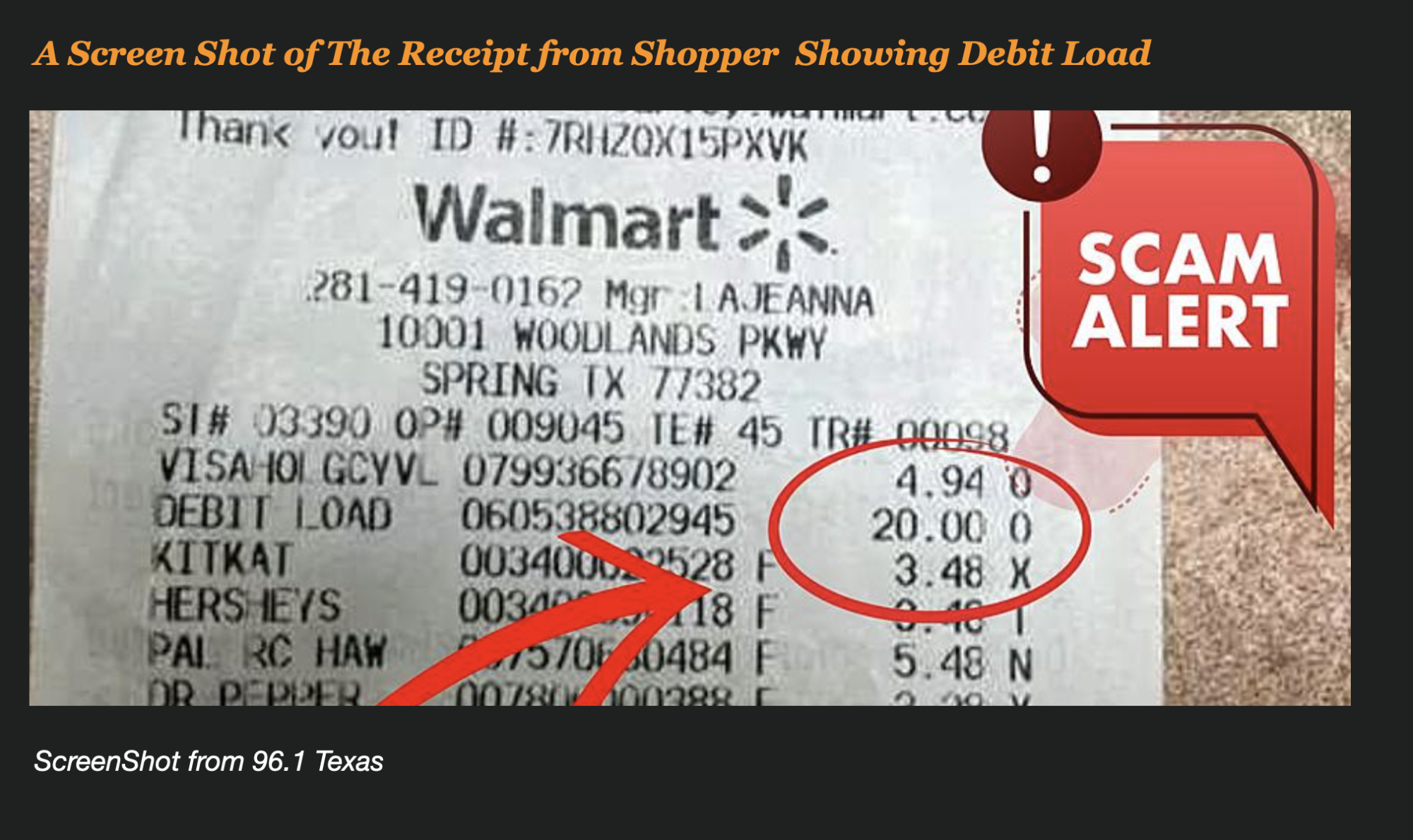 The scam was first reported on Classic 96.1 by an anonymous Walmart customer in Spring Texas, who was shocked to find an unidentified charge on their receipt when they got home.