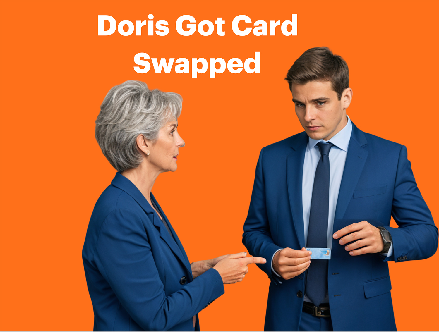 “There you go, mam. You are safe now”, he said. Doris took her card, put in her purse and went on her way.