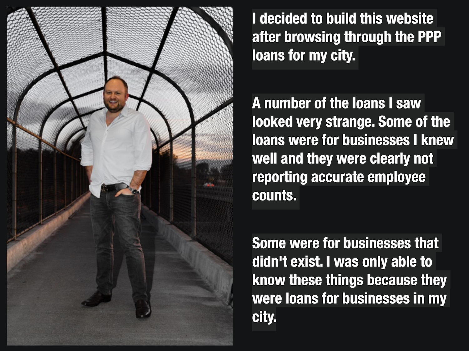 He created the website after browsing through PPP loans through his own city and finding some obvious fraud related to businesses that he knew very well.