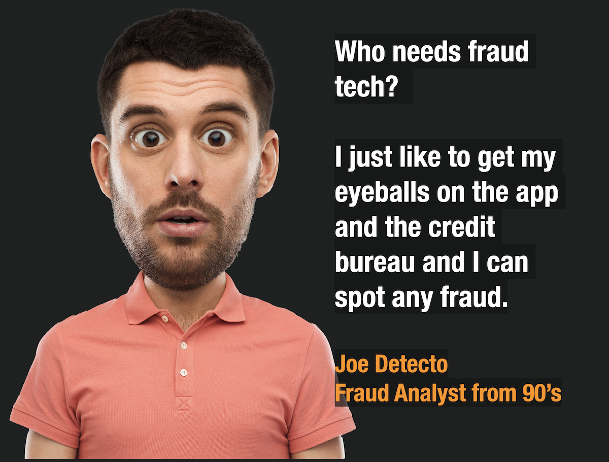 The only fraud detection that existed was fraud analyst putting their eyeballs on applications to look for red flags and checking out manually if the information on the application matched to the credit bureau.