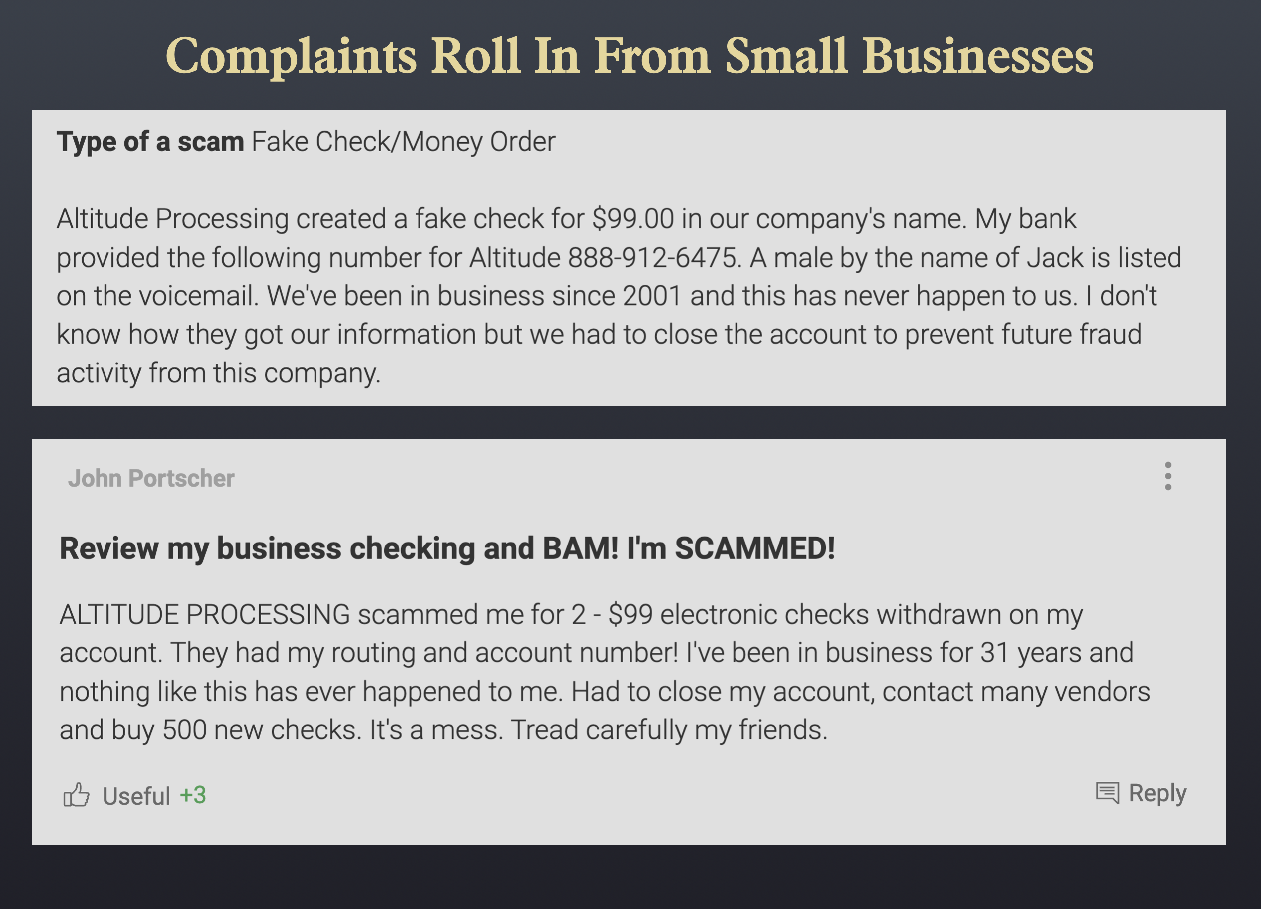 Eventually, the degree of complaints against Altitude Processing stacked up, and their gig was exposed.