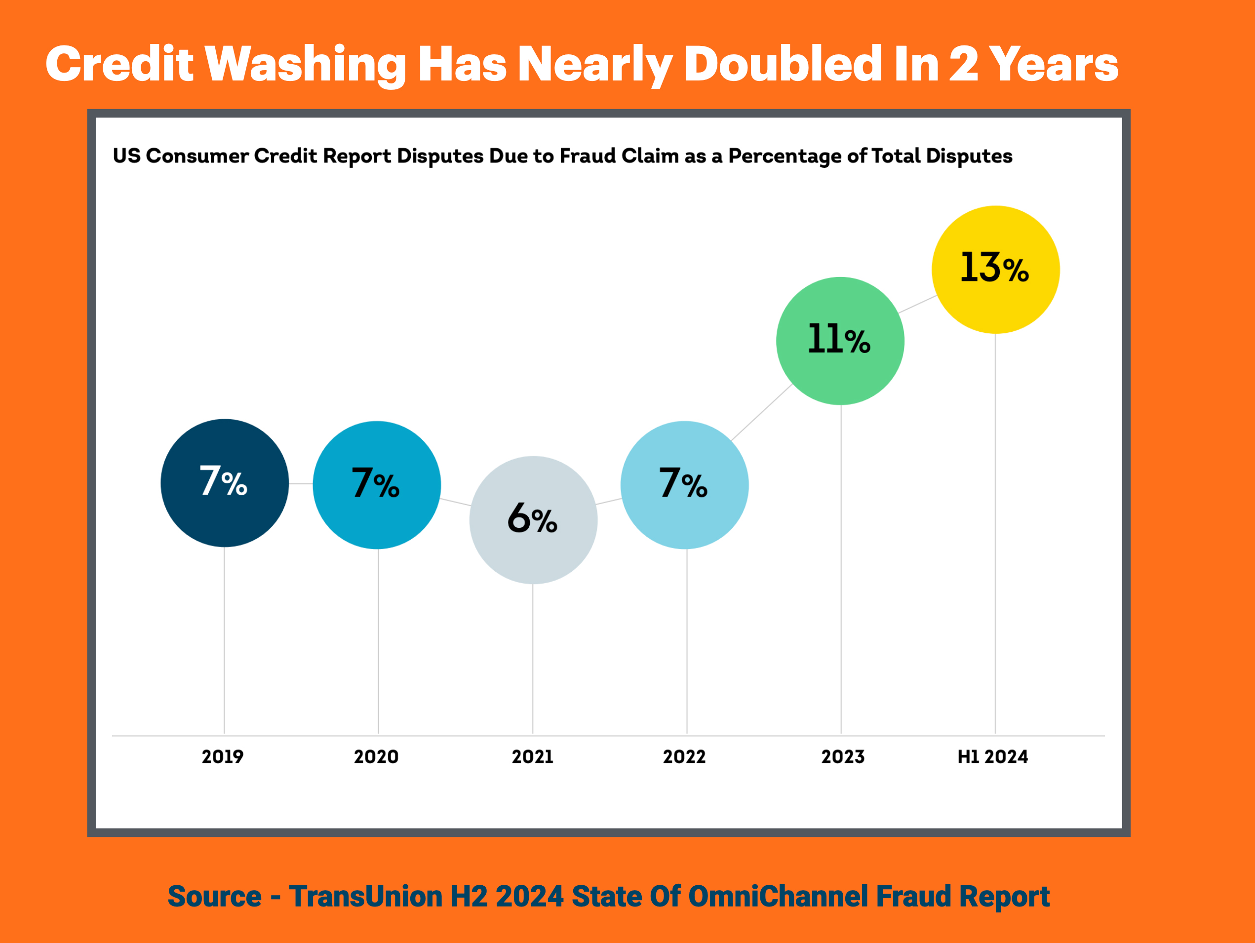 TransUnion’s data shows that in the first half of 2024, disputes due to fraud claims represented 13% of all credit report disputes in the US – the highest level analyzed since 2019.