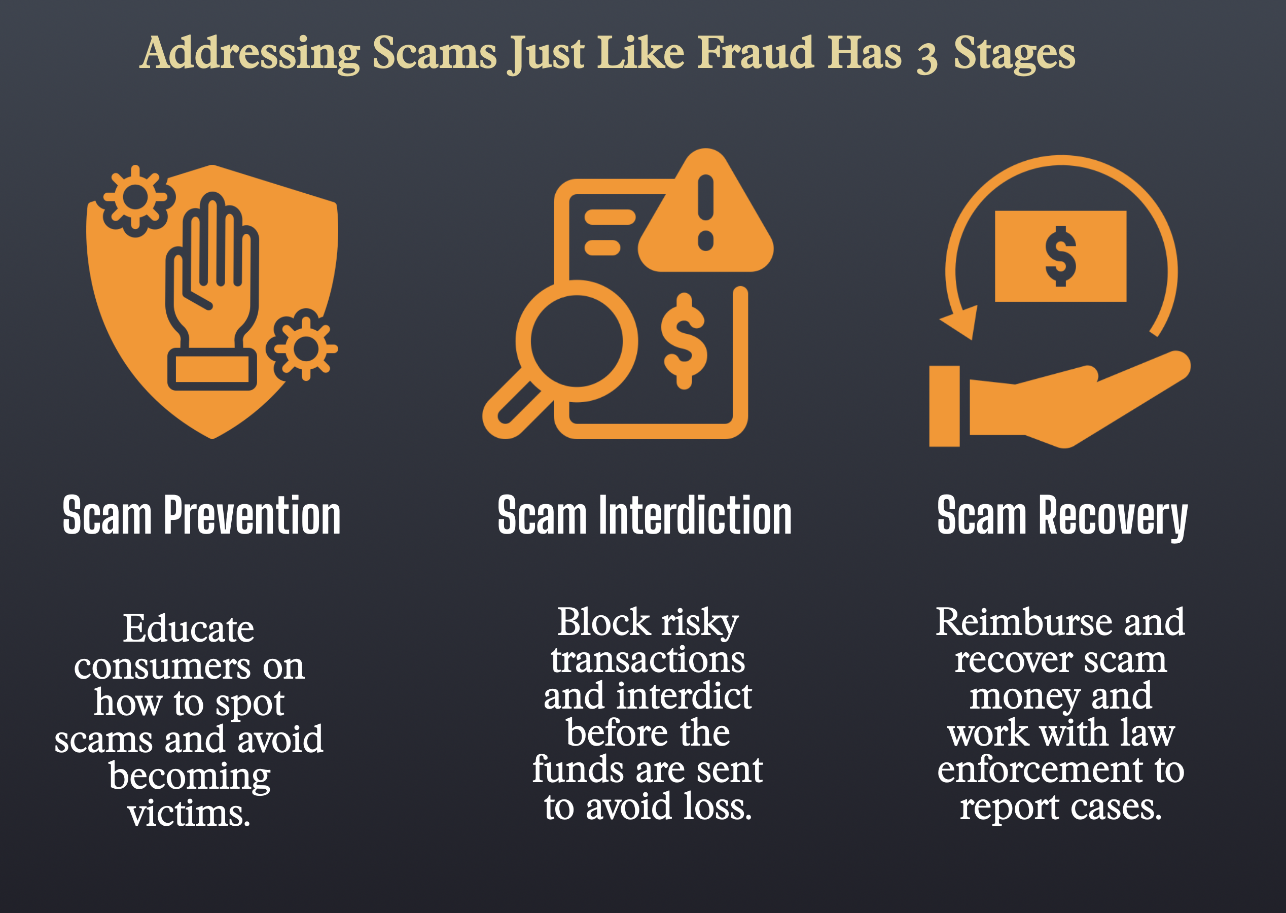 Scam interdiction is just one of the three pillars that fraud fighters have used for years. At some point education and reimbursement can only go so far.