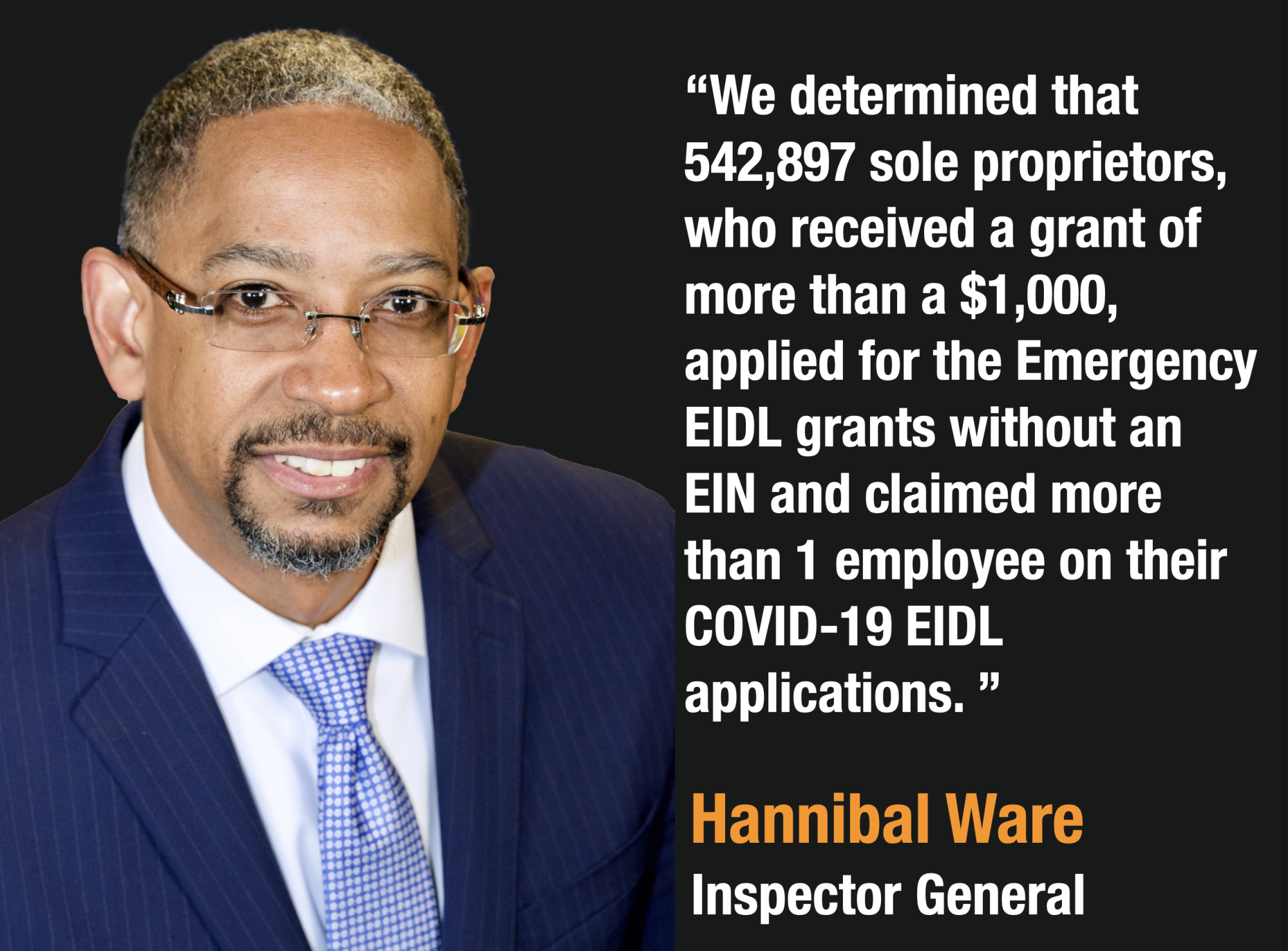 Ware determined that 542,897 sole proprietors, who received a grant of more than a $1,000, applied for the Emergency EIDL grants without an EIN and claimed more than 1 employee on their COVID-19 EIDL applications.