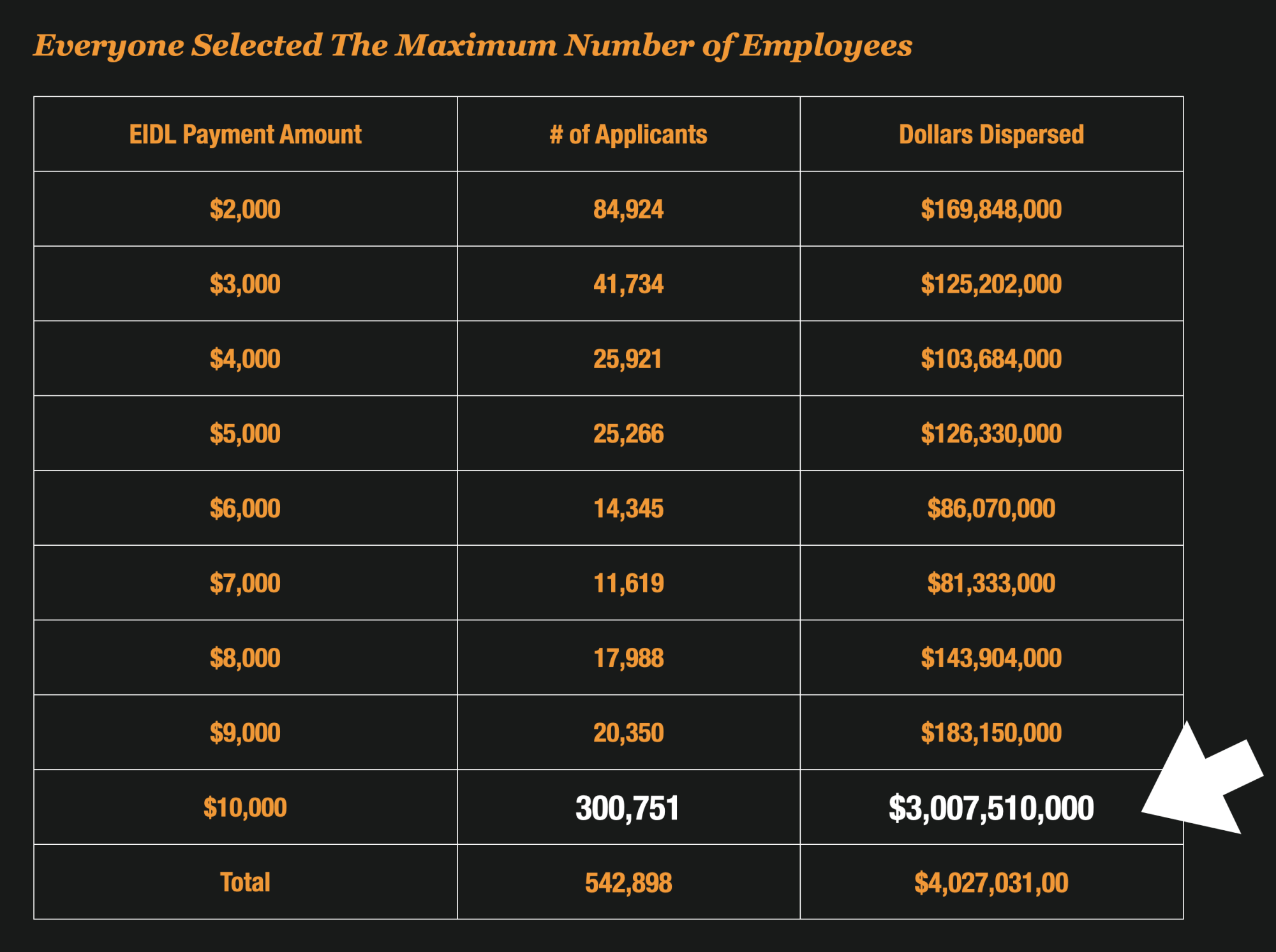 The math was pretty simple. Applicants would get $1,000 per employee they had – up to 10 employees.