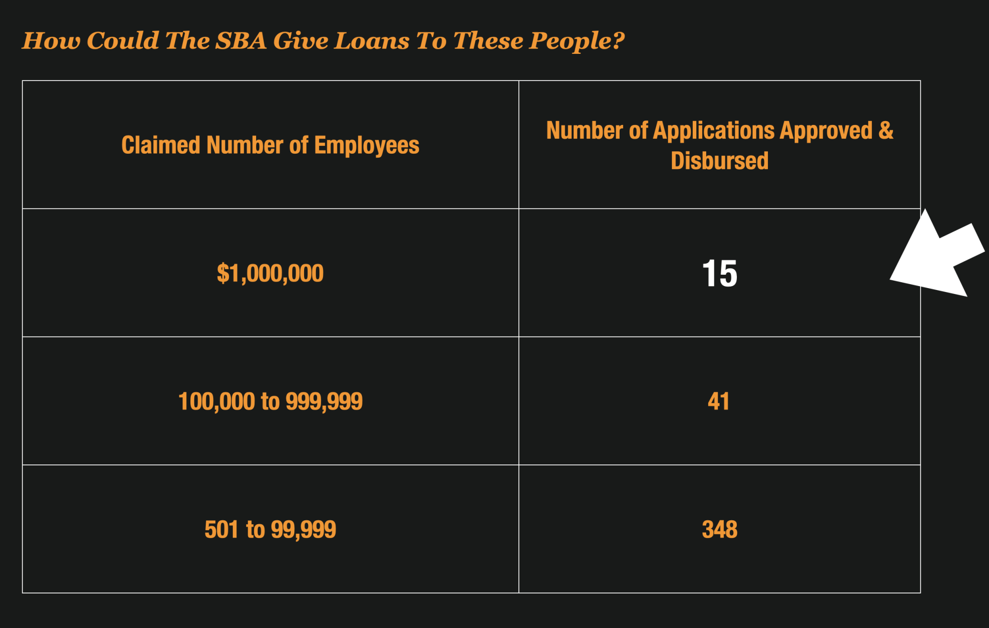 If you think that chart is ridiculous, get ready for your head to explode. It gets even worse. The SBA granted loans to some sole proprietors that claimed to have a million employees.