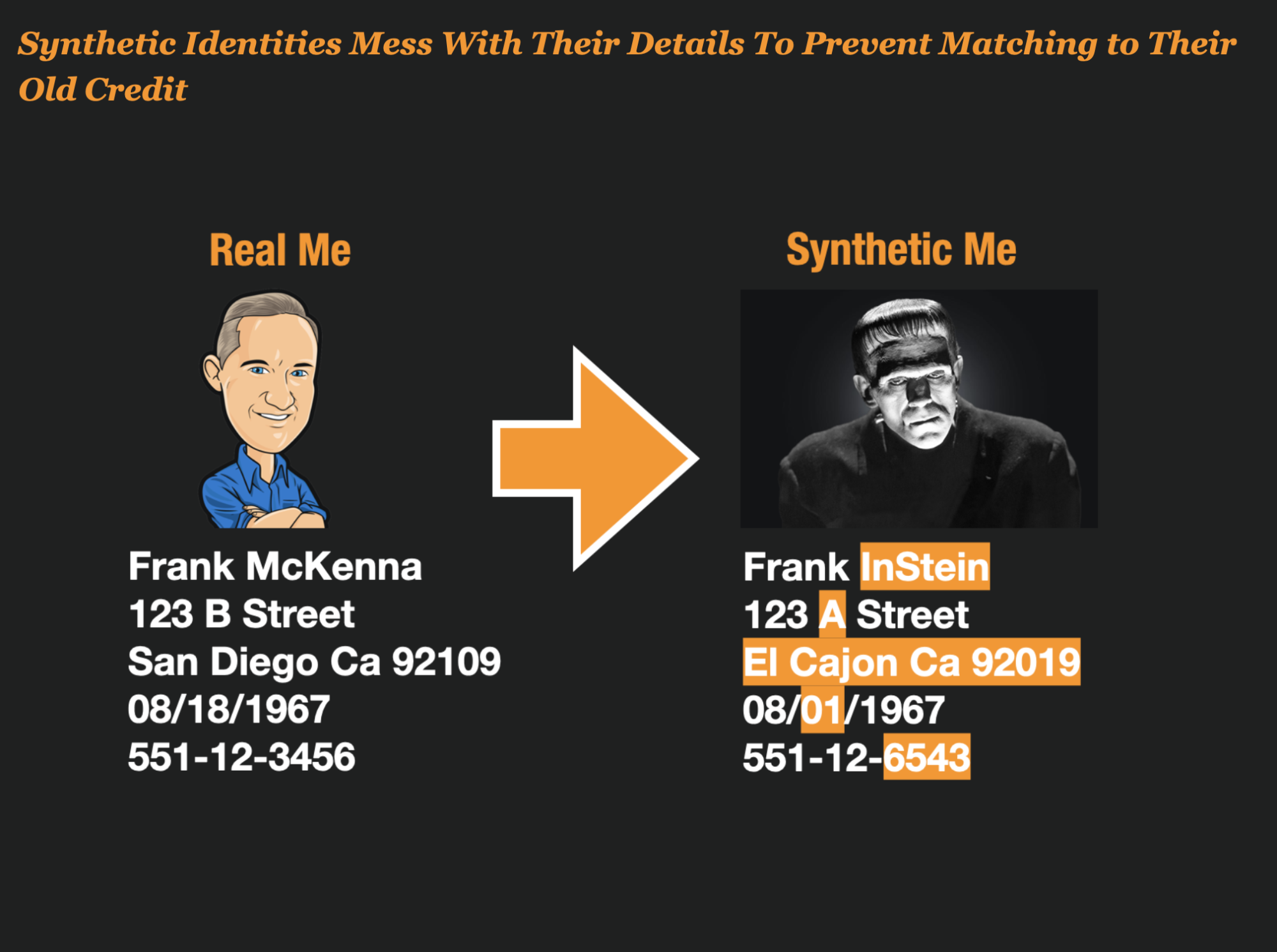 Synthetic fraudsters understand that when they change these key identifiers, the credit bureau won’t be able to match them to prior history. So, a brand new credit file is created with that new PII combination, creating a brand new identity.