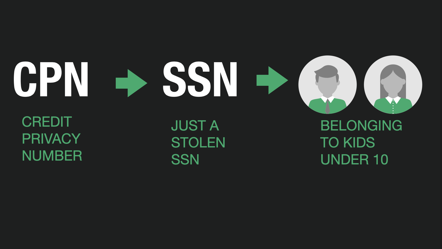 They created the term “Credit Privacy Numbers (CPN’s) to make the use of stolen social security numbers more palatable to the everyday person.