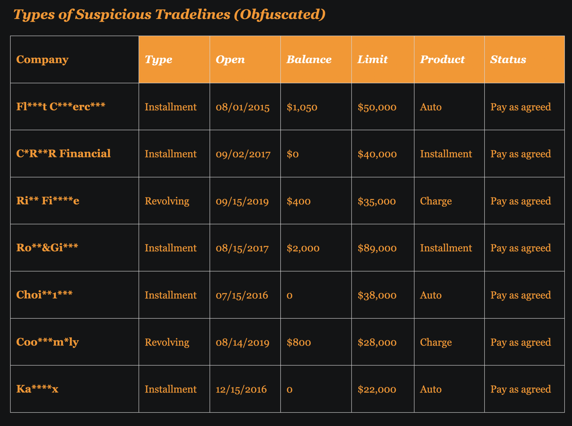 But Lately, Some Suspicious Tradelines Have Begun To Appear