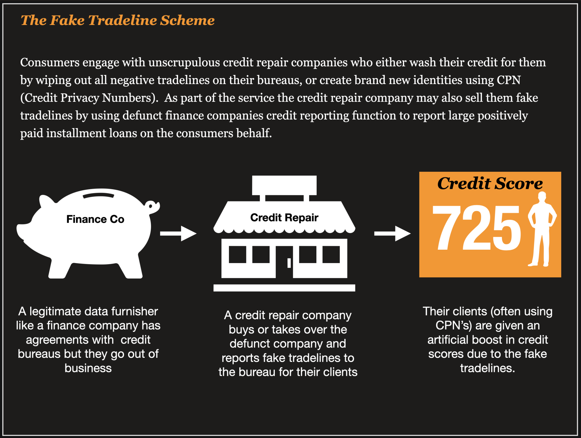 The scheme is sinister. Essentially credit repair companies are using shell companies to engage in systematic fraud against lenders, credit reporting agencies and consumers.