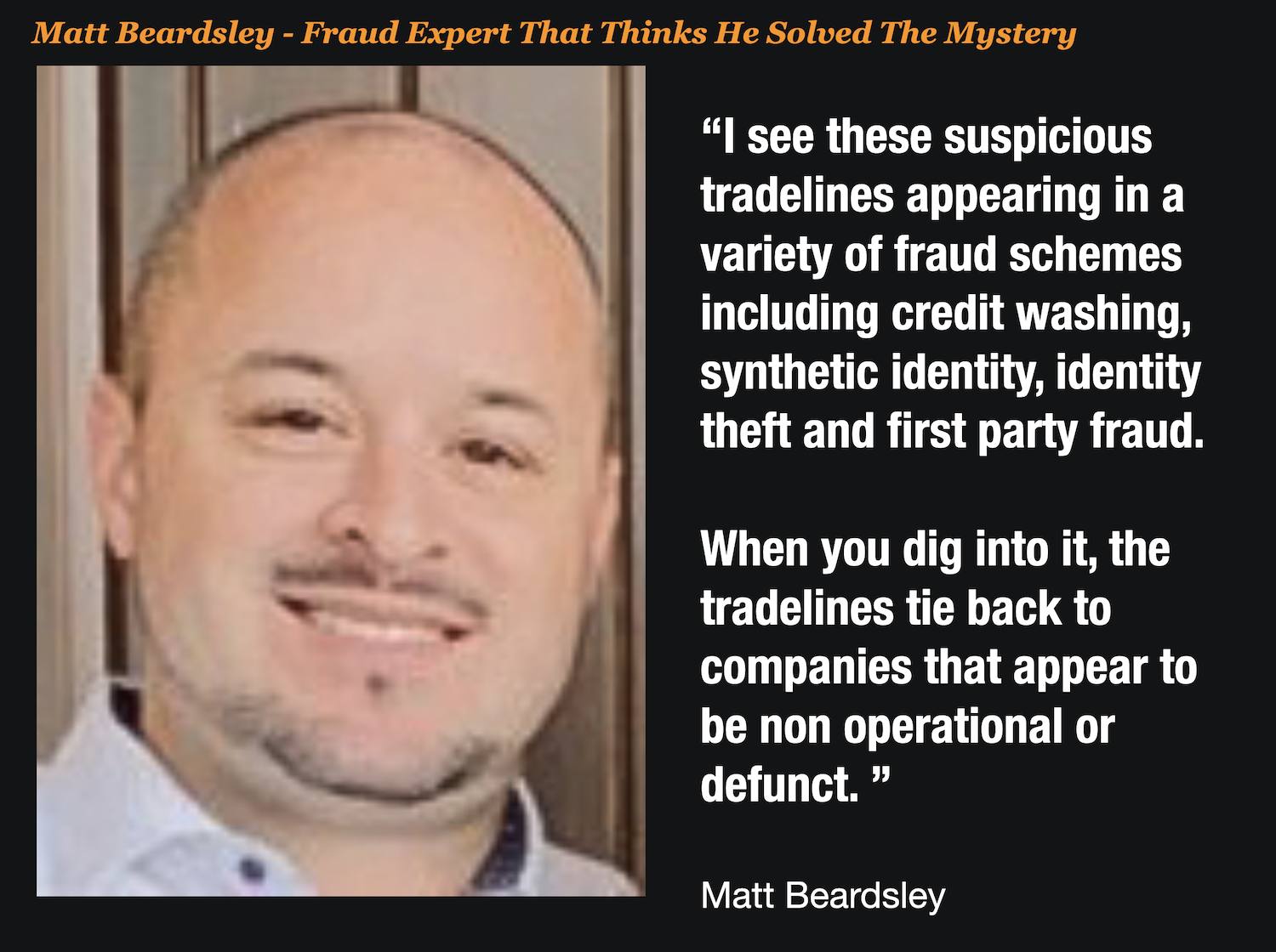 After some poking around, he discovered that many of these suspicious tradelines were originating from defunct companies that had gone out of business. These companies had possibly been granted data furnishing privileges with the credit bureaus before they went out of business.