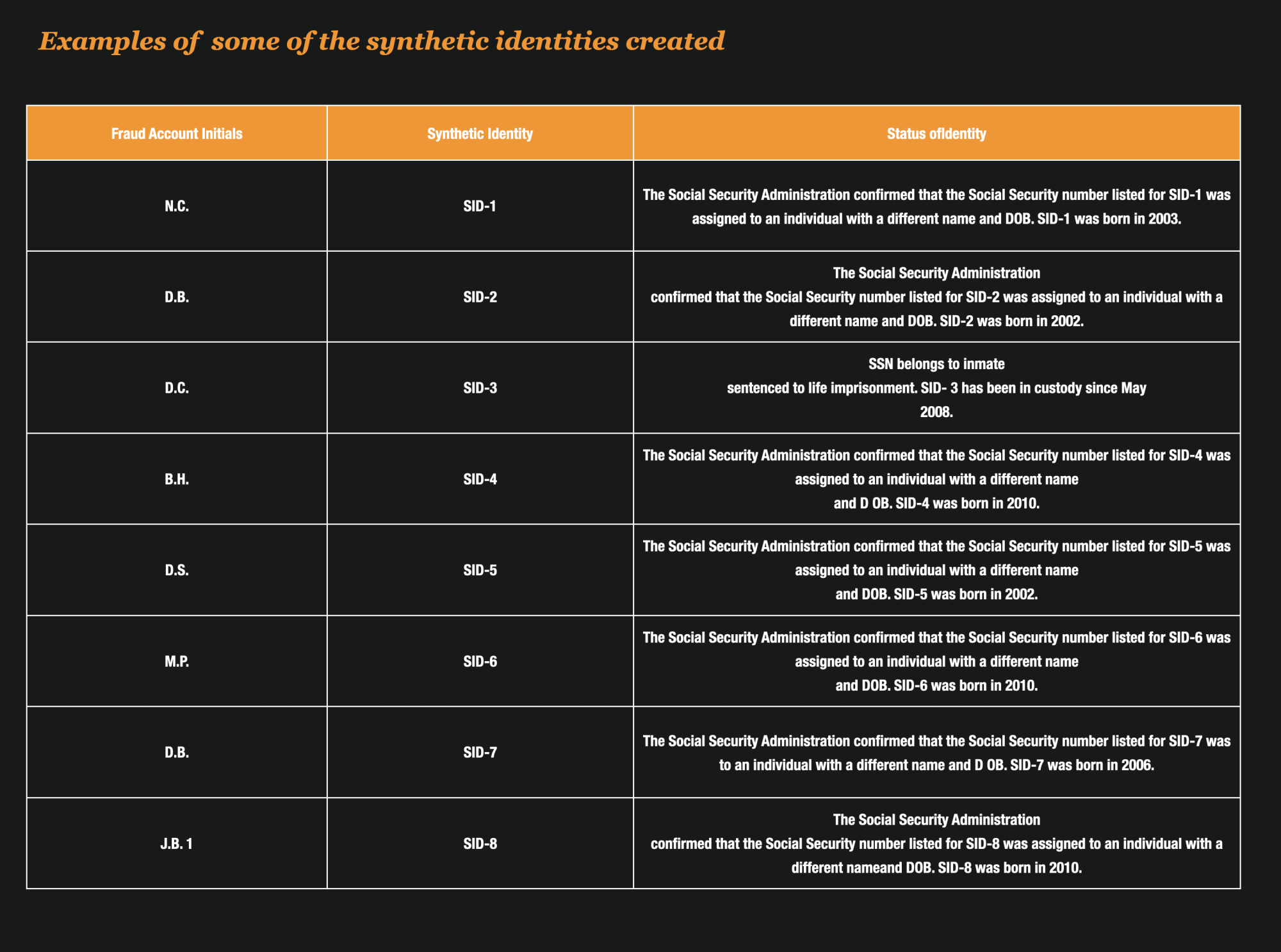 At the heart of the fraud scheme were 700 carefully constructed synthetic identities that the pair had created to defraud an unnamed bank in San Antonio Texas.