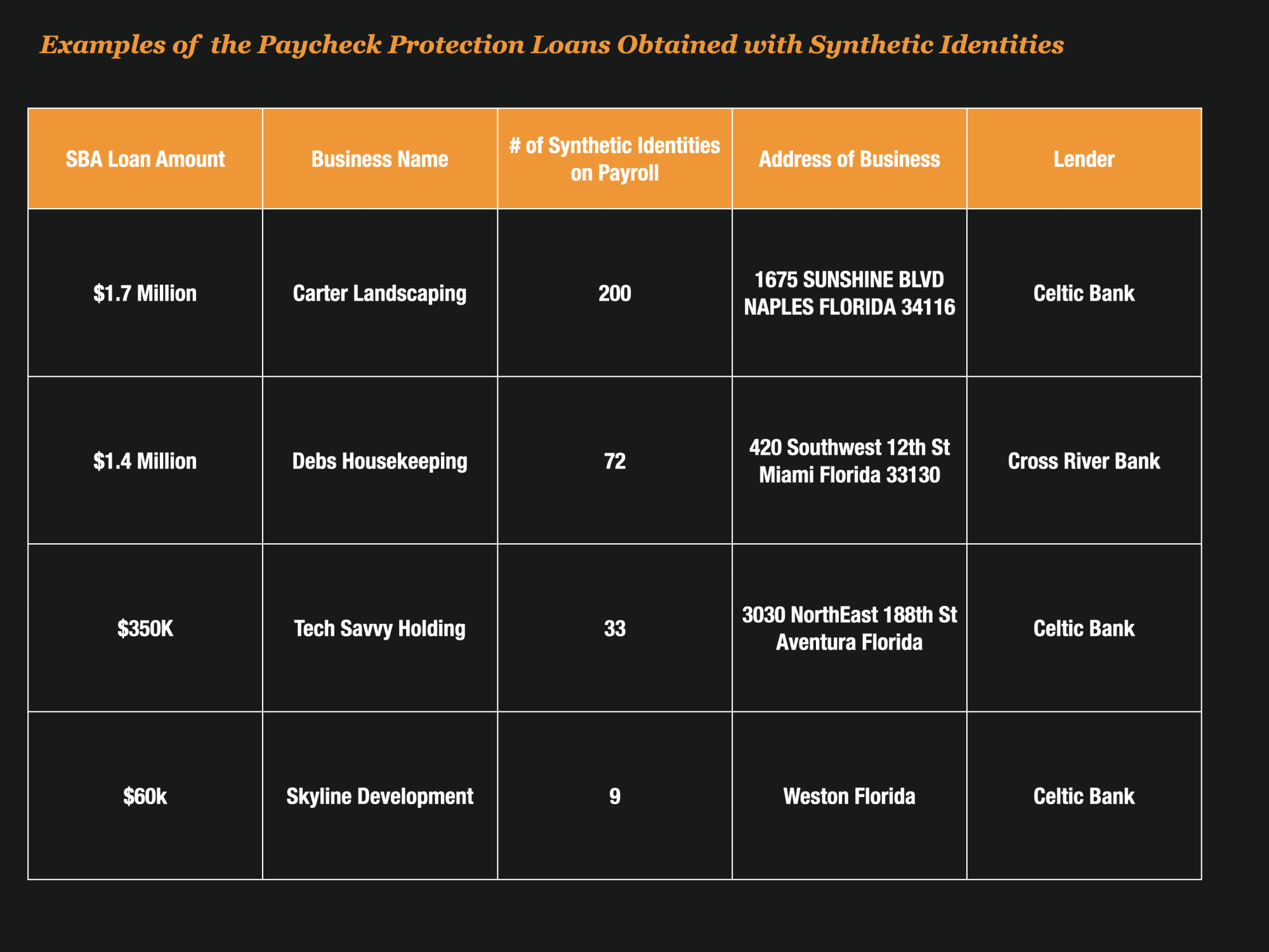 Multiple Fake Businesses Were Created With The Synthetic Identities Linked to Them