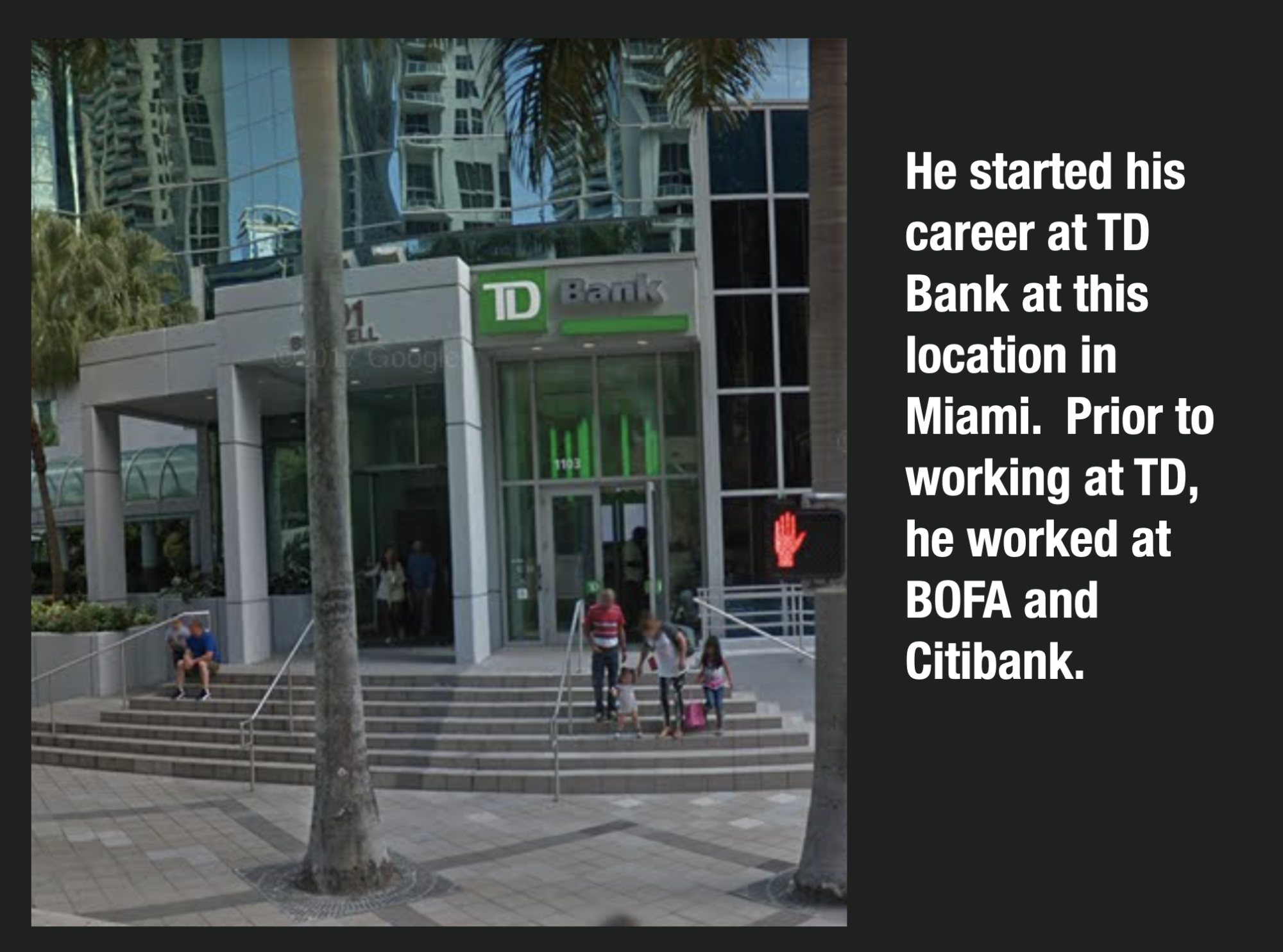 Prior to joining TD Bank, he served as a Financial Center Manager at Bank of America in Miami, and prior to that he held numerous leadership roles through Citibank International.