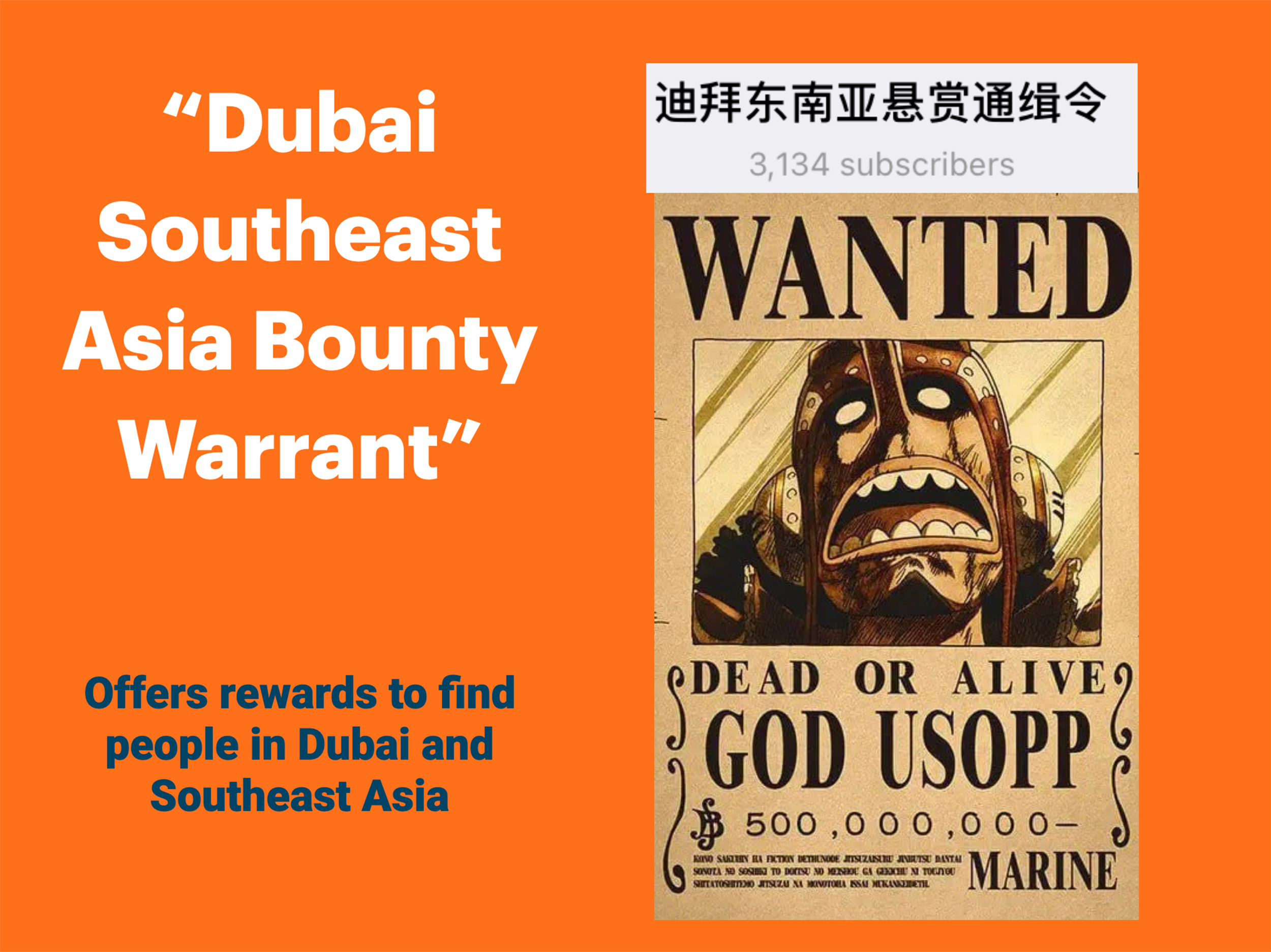 The channel, called Dubai Southeast Asia Bounty Warrant, appears to serve two purposes: recovering scam compound slaves who have escaped and returning them to the bosses, and recovering victims and returning them to their families. The channel also posts bounty rewards for people who have skipped out on gambling loans from the bosses.