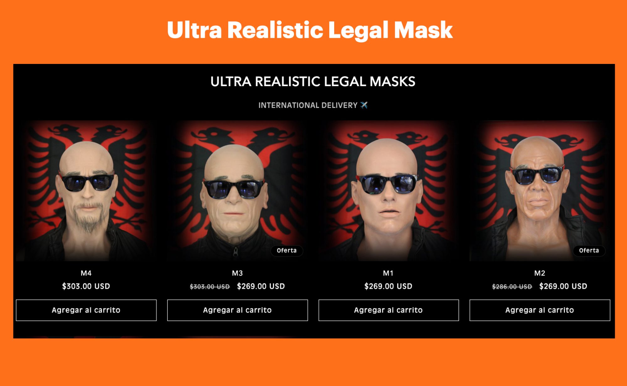 It’s called MaskonMoney, and their masks are so realistic that it scares me. The masks which appear to be manufactured internationally are touted as “legal” and sold for about $250.