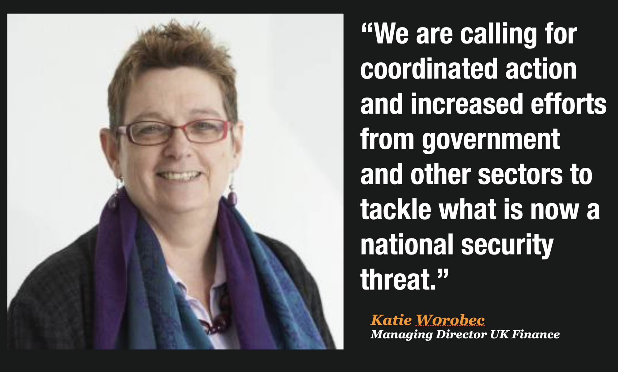 Katy Worobec, managing director of economic crime at UK Finance, said: “We are calling for coordinated action and increased efforts from government and other sectors to tackle what is now a national security threat.”