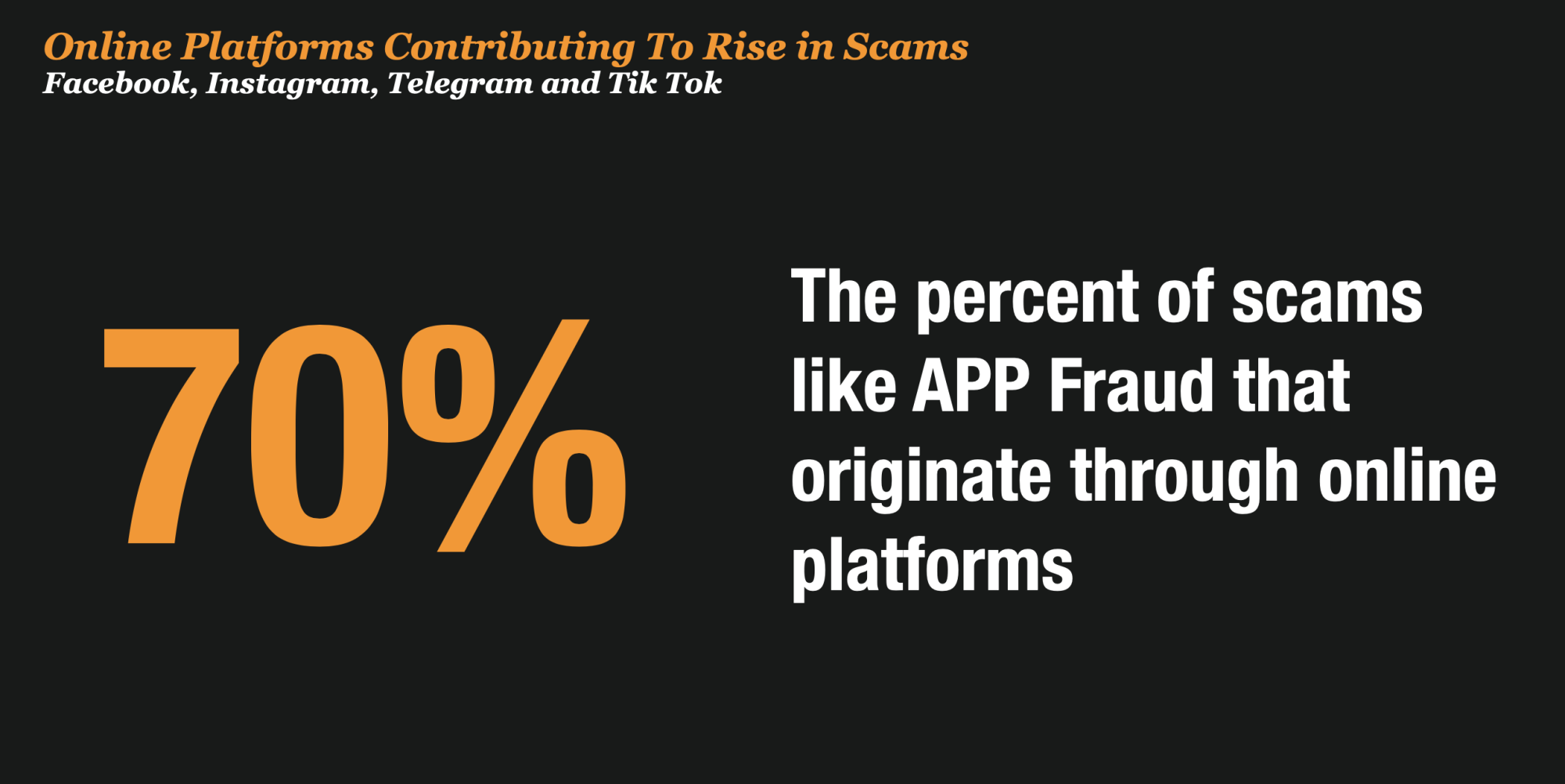 And to make matters worse, Social Media is playing an increasingly more important role in scamming. Experts estimate that up to 70% of the APP Scams originate on online platforms and social media.