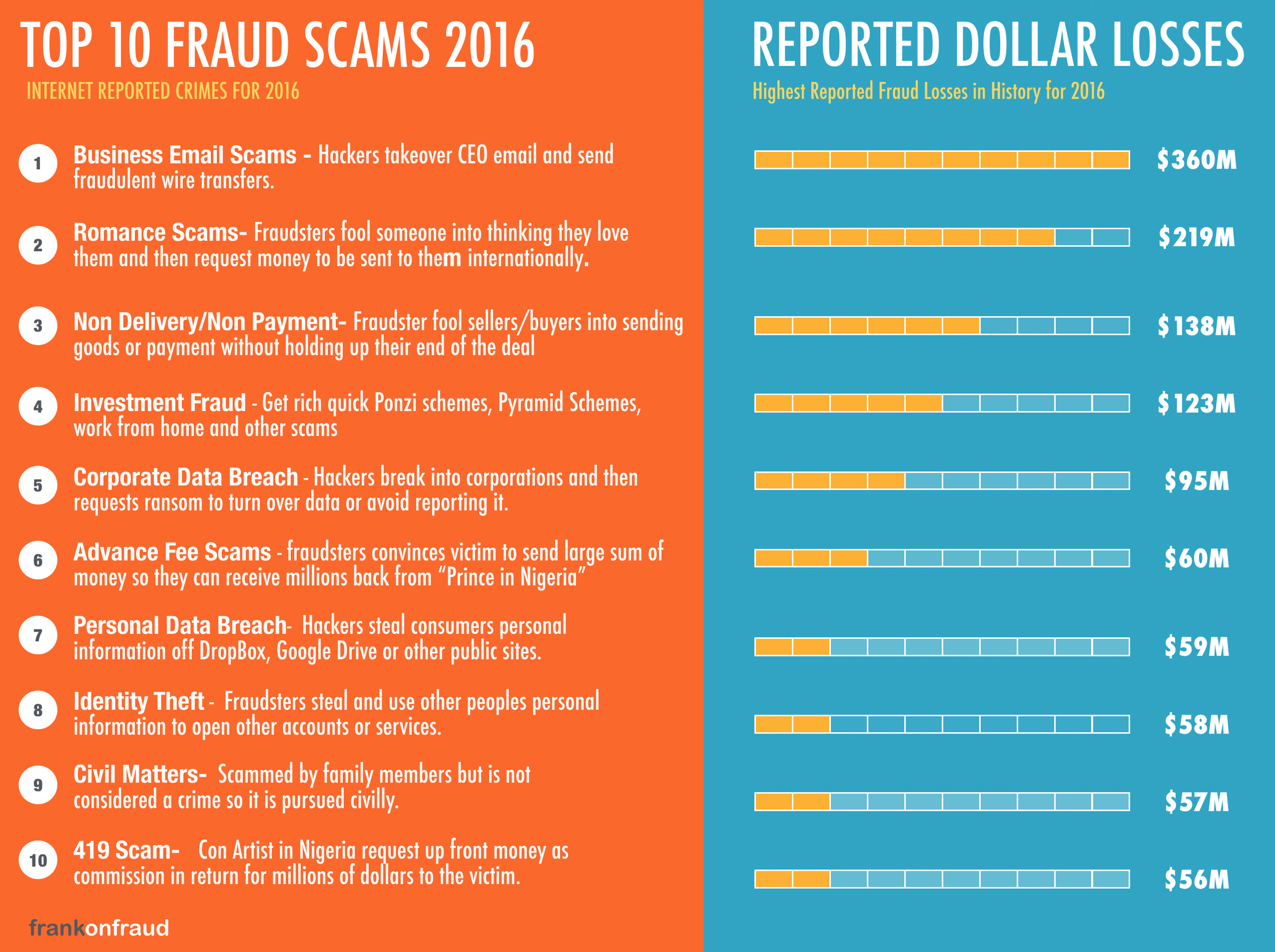 Each year the FBI compiles statistics on all internet crimes reported by Americans and creates the Internet Crimes Report.  It is the best indication of how Americans are being conned by crooks, thieves, and liars.