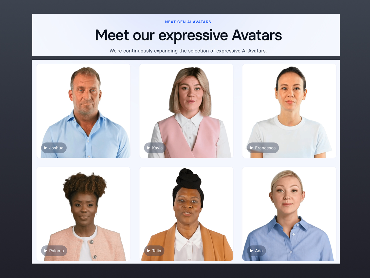 For $1,000, you can create your own studio Avatar, a deepfake clone of yourself, using the same range of emotions in your videos.
