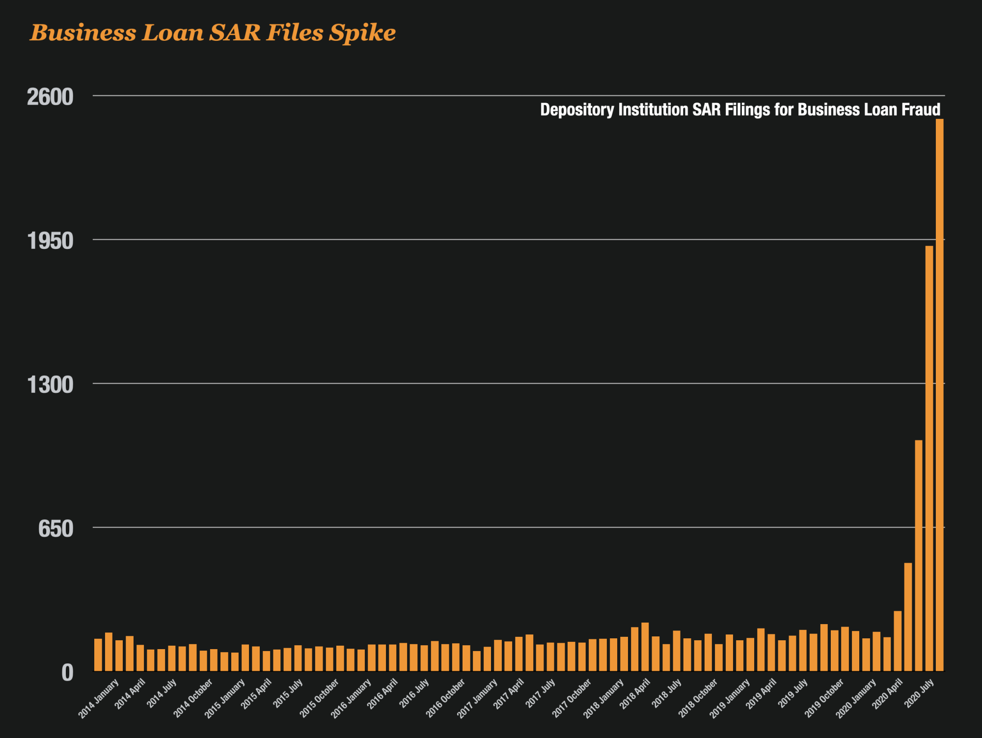 SAR filings for business loans have skyrocketed in 2020, hitting their highest levels ever.