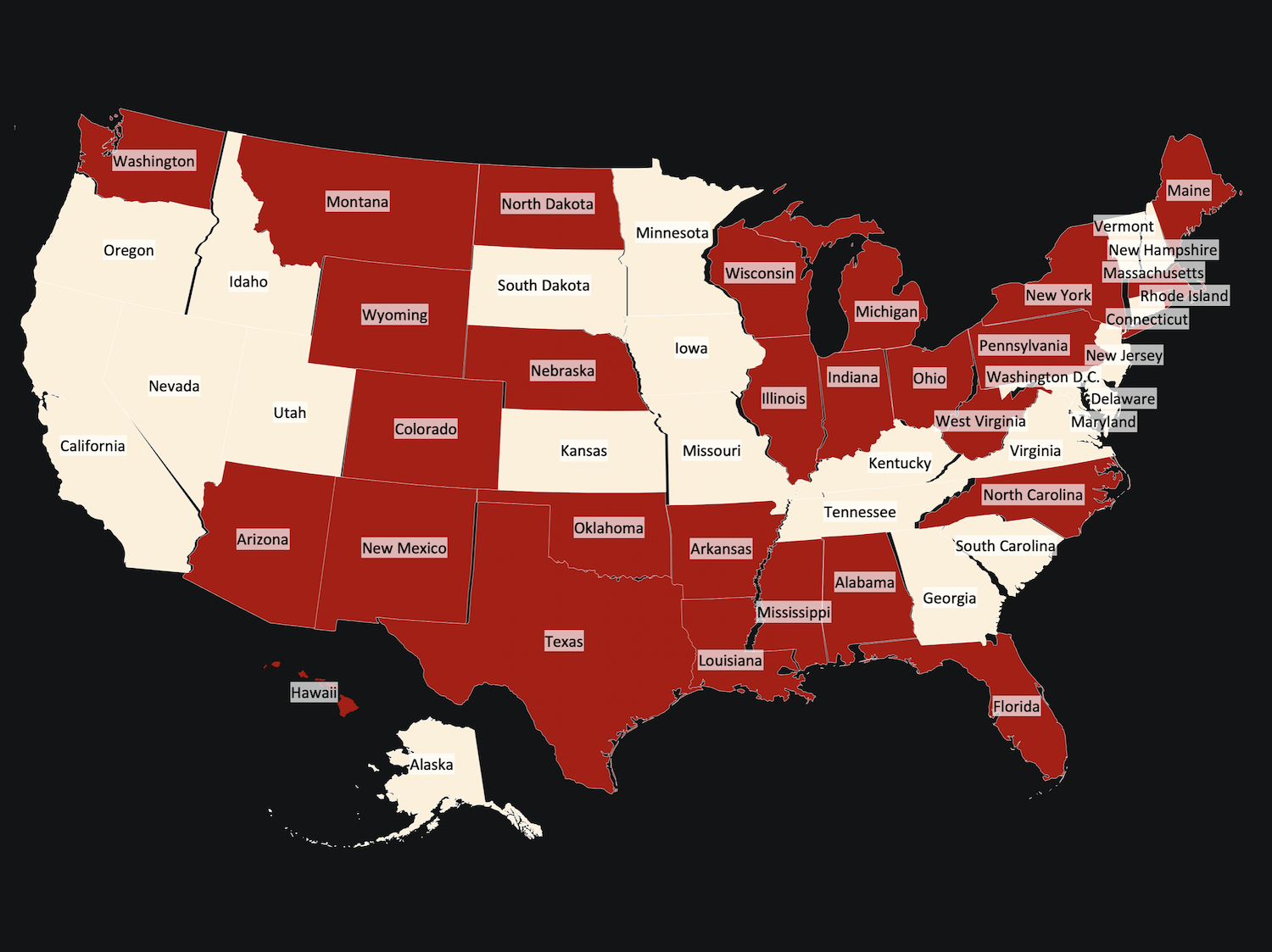 This is the list of all states that have issued warnings to residents. It accounts for 53% of all states.