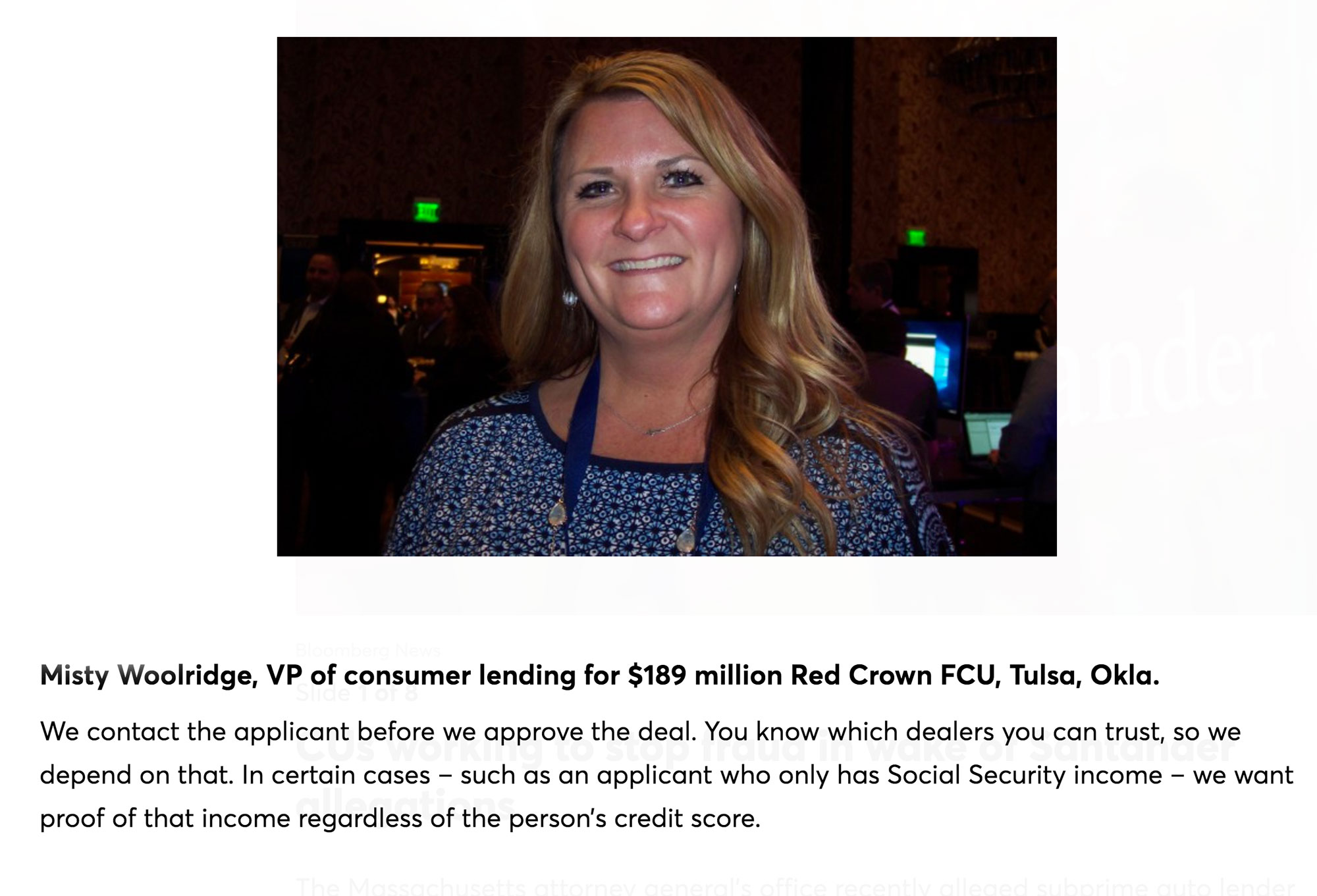 The Trinity Credit Union experienced a fraud outbreak that hit 30-40 loans where the dealer was submitting fraudulent pay stubs across all of the applications. When they noticed the trend and became aware of the fraud, and they started to put in place many more fraud checks. Mostly they will let experts spot check the auto loans and look for patterns of income, employment, and even straw borrower fraud.