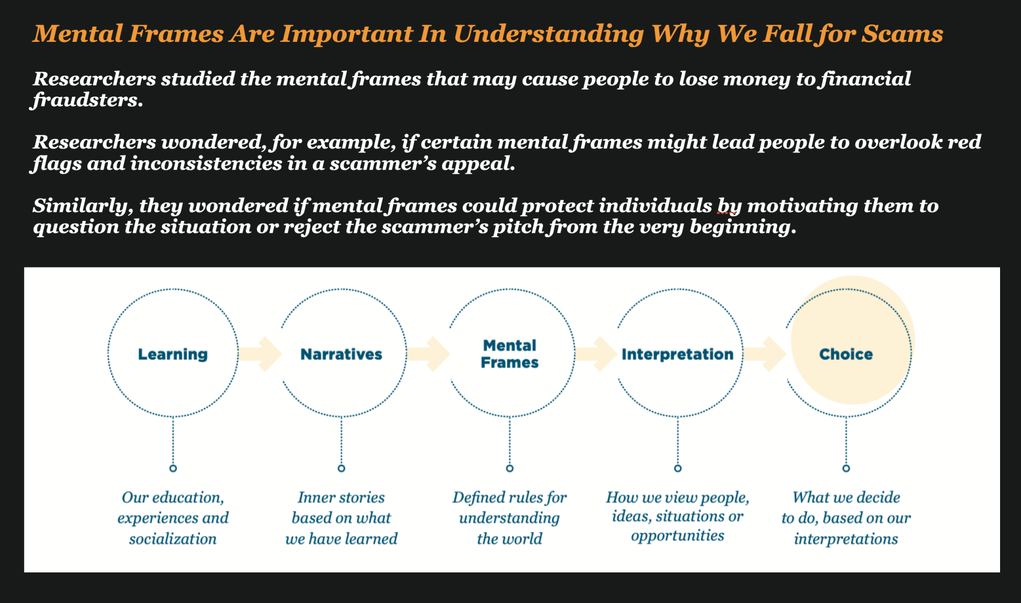 Their research concluded that people’s “Mental Frames” are very important in understanding why they fell for the scam.