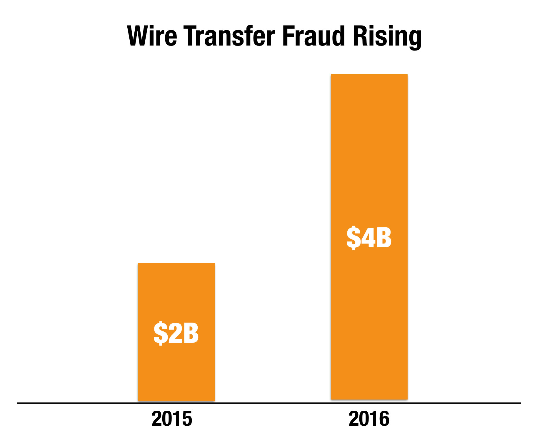 In the last half of 2016, $2 Billion dollars in Wire Fraud was reported by US businesses, which experts believe probably only represents about 20% of the total.