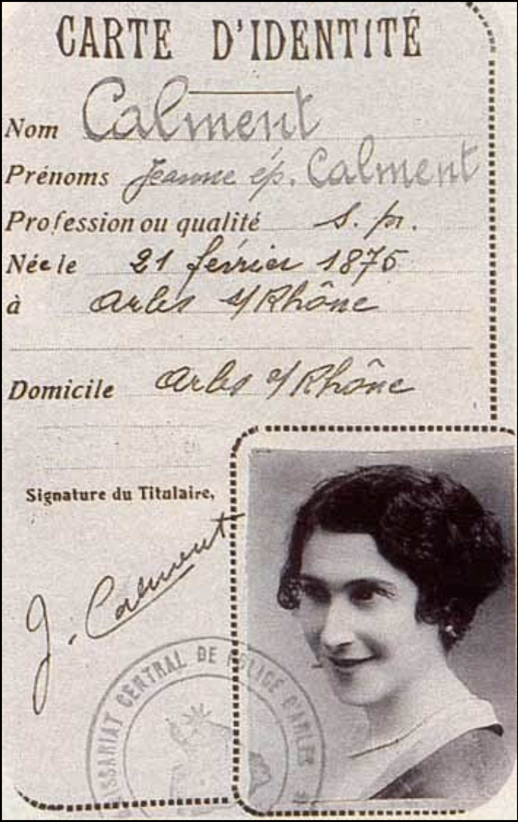 Jeanne Calment’s identity card in France