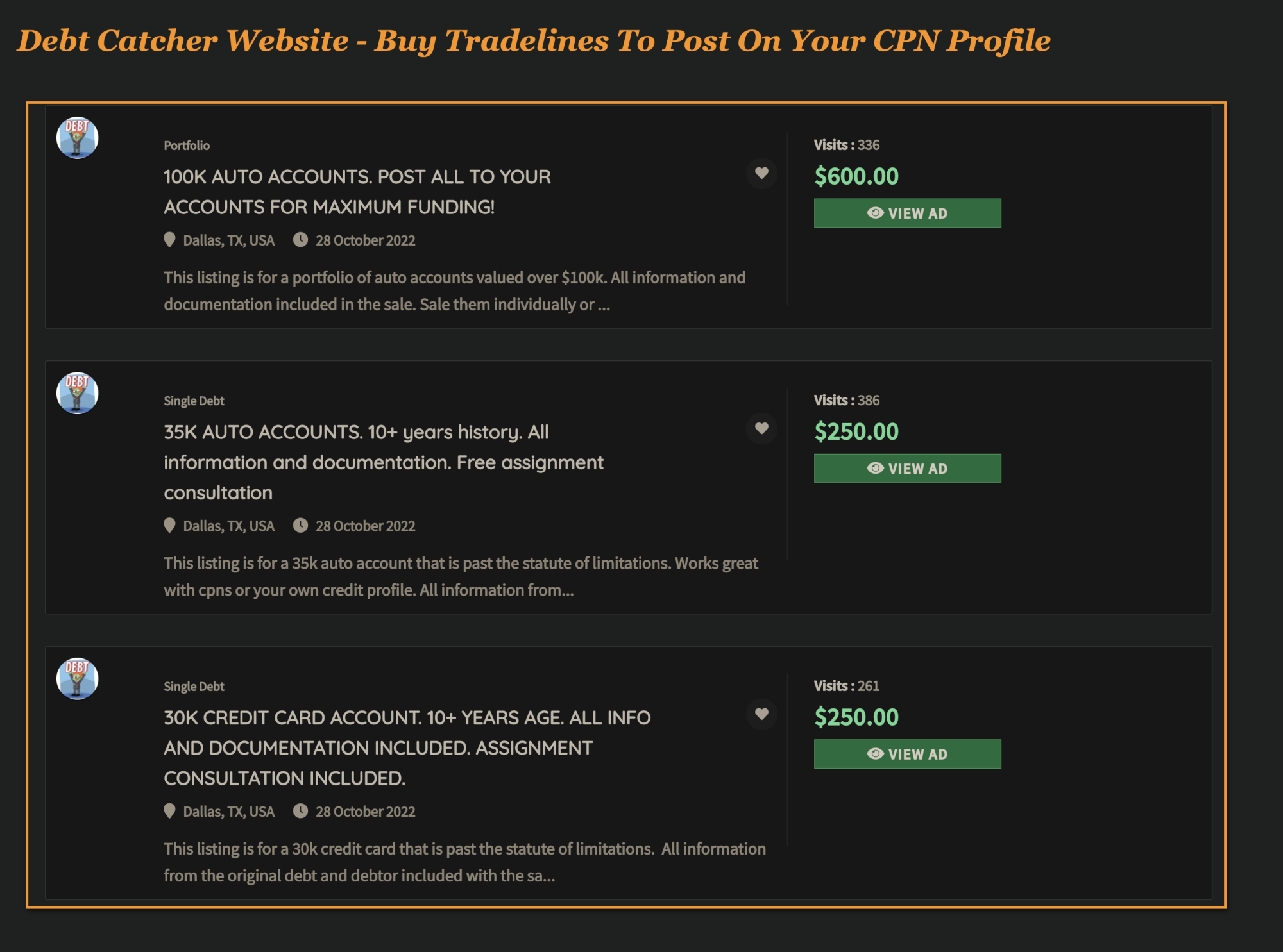 Surprisingly, getting your hands on Zombie Debt is relatively simple. You can buy debt online, for example. A site called Debt Catcher list hundreds of tradelines that can be purchased from $250 all the way up to $10,000.