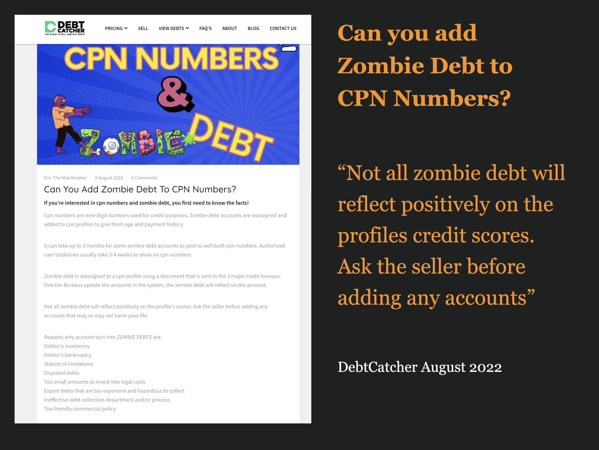 DebitCatcher knows its market consist of CPN users. In a blog post called, “Can you Add Zombie Debt To Your CPN?” they guide the reader how to add the debt in the right way to avoid pitfalls.